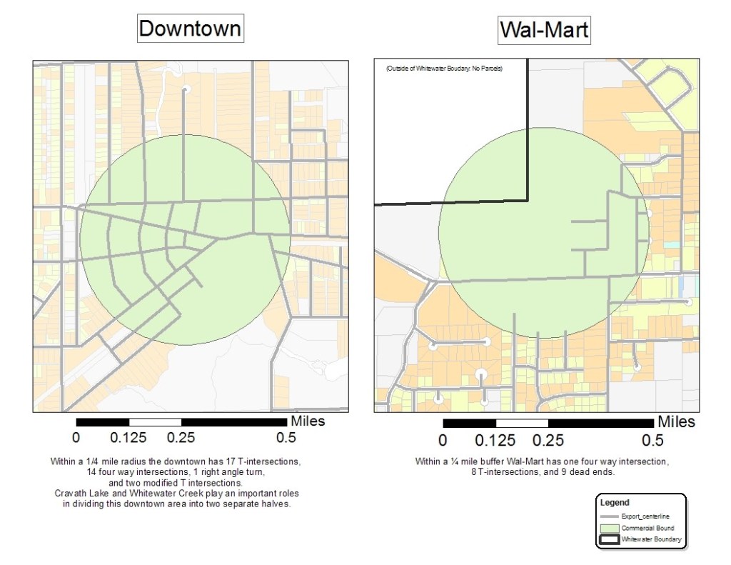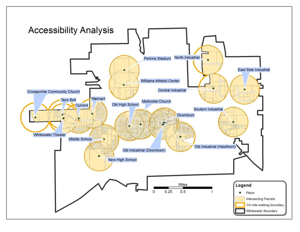 The city exists within a broader regional context characterized by considerable increases in urban land consumption in recent decades and a rising concern over the effects of sprawl. Although there are multiple interpretations of the term “sprawl,” nearly all planners agree that it represents unhealthy growth. This study will document and fully explore the role played by the automobile in reshaping Whitewater’s urban configuration. Therefore, this study focused primarily on how building typologies, street geometries, pedestrian access, and residential density have shaped Whitewater, WI from 1965 to the present.