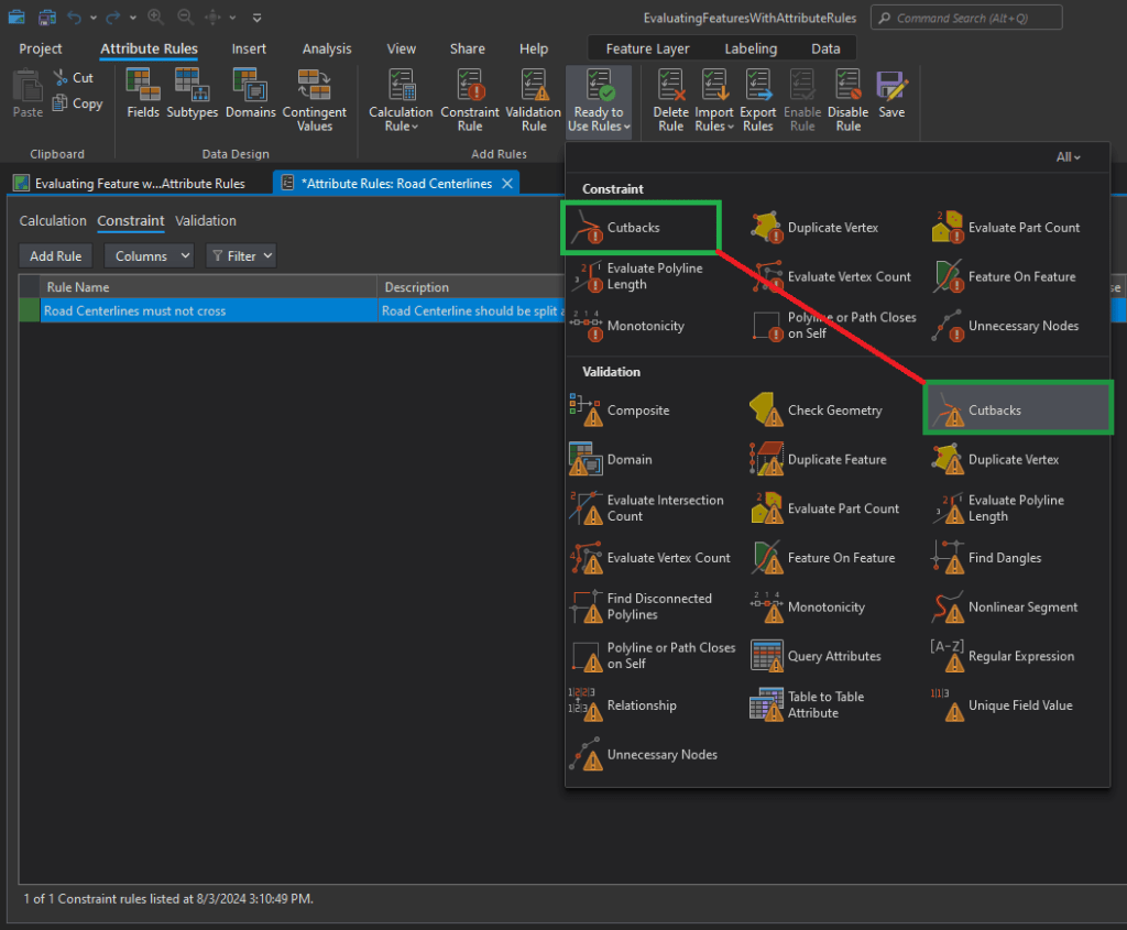 Notice that “Cutbacks” are found both in the Validation and Constraint sections. We want to choose the one in the “Constraint” section.
