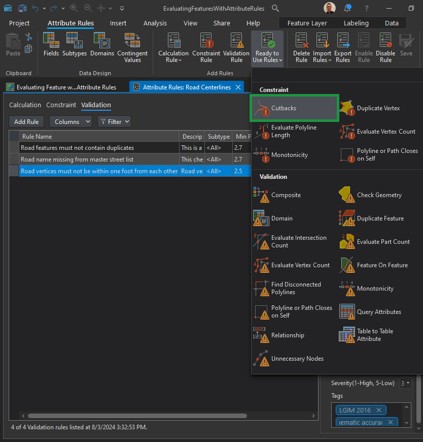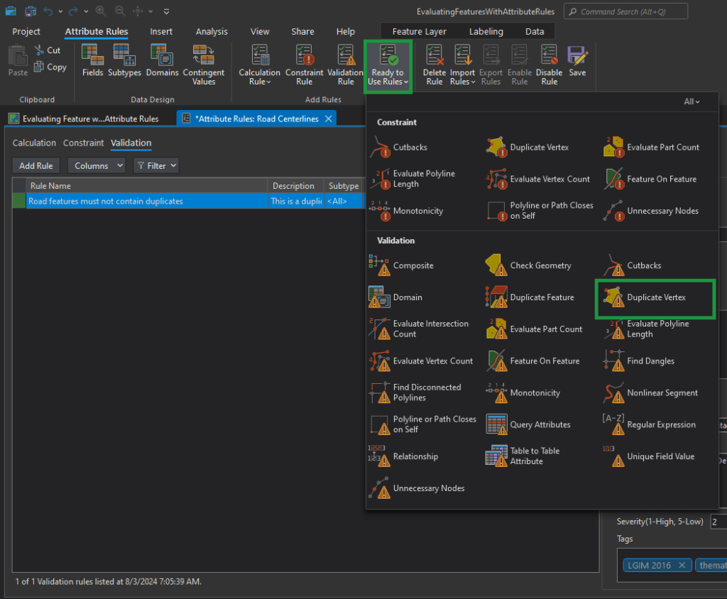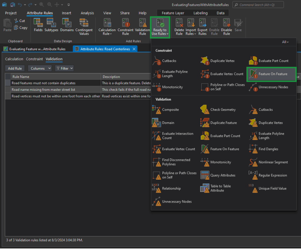Now in the top Menu Ribbon, choose the Attribute Rules tab. You have a lot to choose from. Let’s explore “Ready to Use Rules” first.