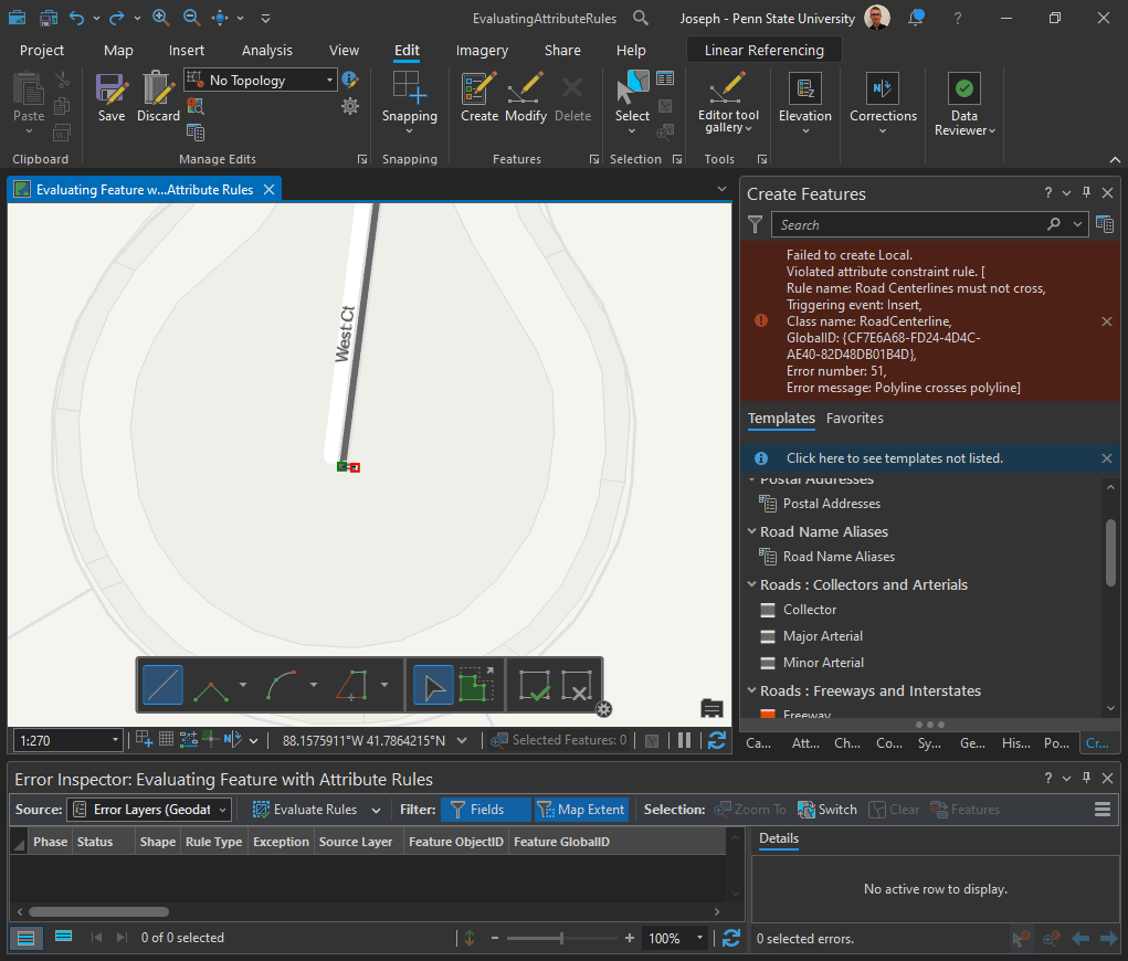 | 1 | Road centerline must split at an intersection. | Feature on Feature | Road Centerline |