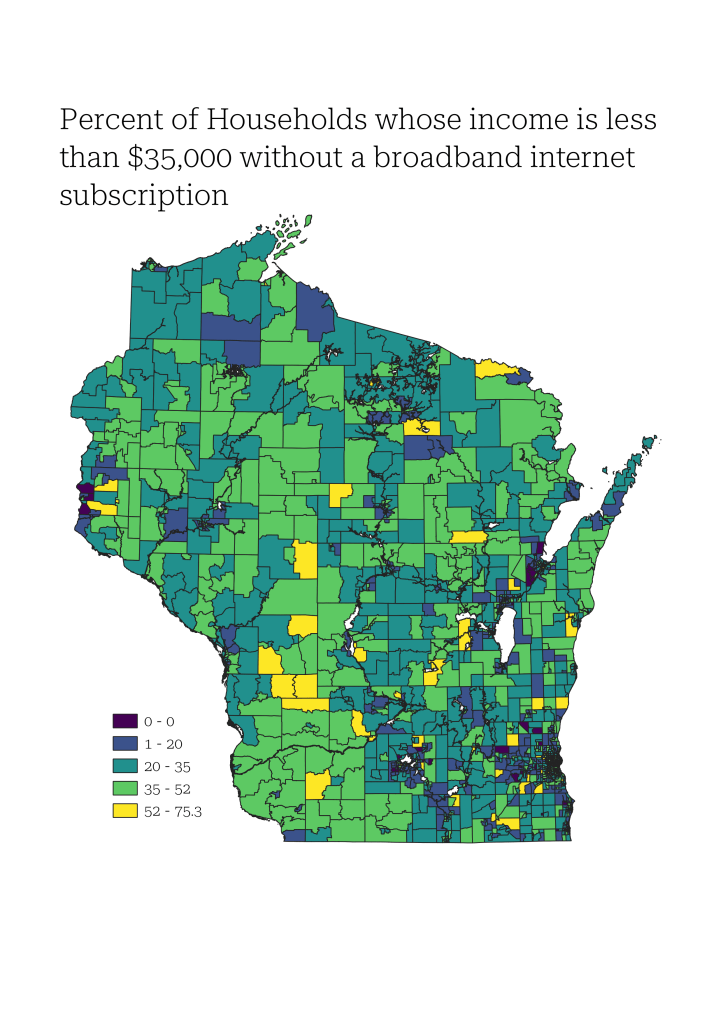 - Upon research, it was clear that both governmental and non-governmental organizations in Wisconsin actively analyze what areas are the least served by operators, and the most economically distressed. By combining broadband data with social and economic indicators, it is possible to pinpoint regions where broadband access could have a significant impact on economic development. The impact of broadband on medicine and agriculture are two topics raised by researchers that are also worth exploring.