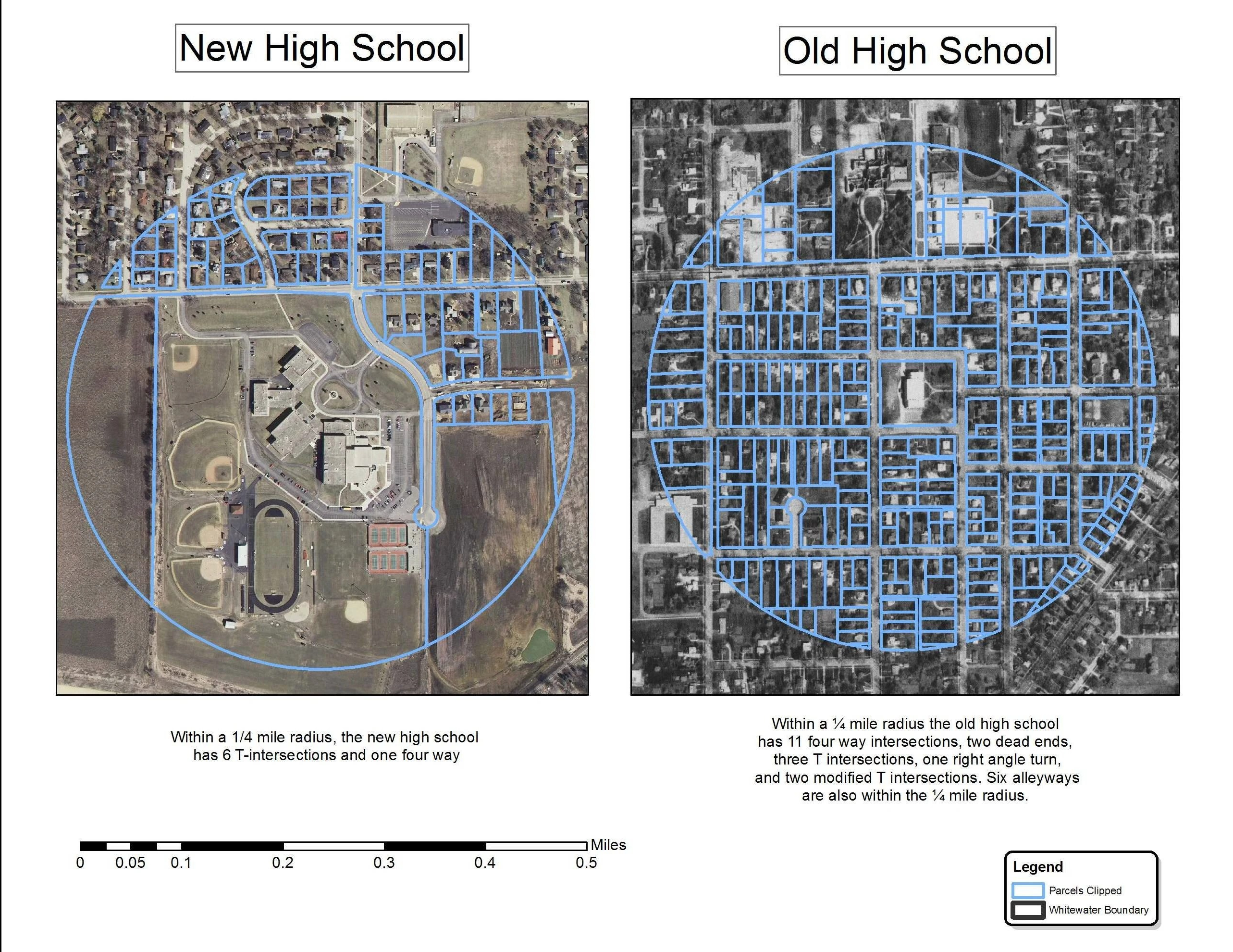 The city exists within a broader regional context characterized by considerable increases in urban land consumption in recent decades and a rising concern over the effects of sprawl. Although there are multiple interpretations of the term “sprawl,” nearly all planners agree that it represents unhealthy growth. This study will document and fully explore the role played by the automobile in reshaping Whitewater’s urban configuration. Therefore, this study focused primarily on how building typologies, street geometries, pedestrian access, and residential density have shaped Whitewater, WI from 1965 to the present.