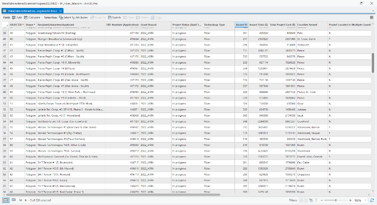 - There is a clear need for collaboration among stakeholders, including government agencies, broadband providers, and researchers. Their efforts are evident on the web. The possibility to access and analyze open data would lead to better-informed decisions and coordinated efforts. For example, the government and public may be interested to take a closer look at what companies receive the most grants and assess the actual implementation of these projects and analyze its economic impact. A RDMS could easily store a wide array of information about each grant in a organized and efficient manner. What are the characteristics of the communities that are receiving grants? The US Census data could easily provide insights into those matters. How many households or buildings are affected by each project? The Wisconsin Broadband Office (WBO) and the Public Service Commission (PSC) in fact, provide that detailed of information (https://apps.psc.wi.gov/ERF/ ).[4]